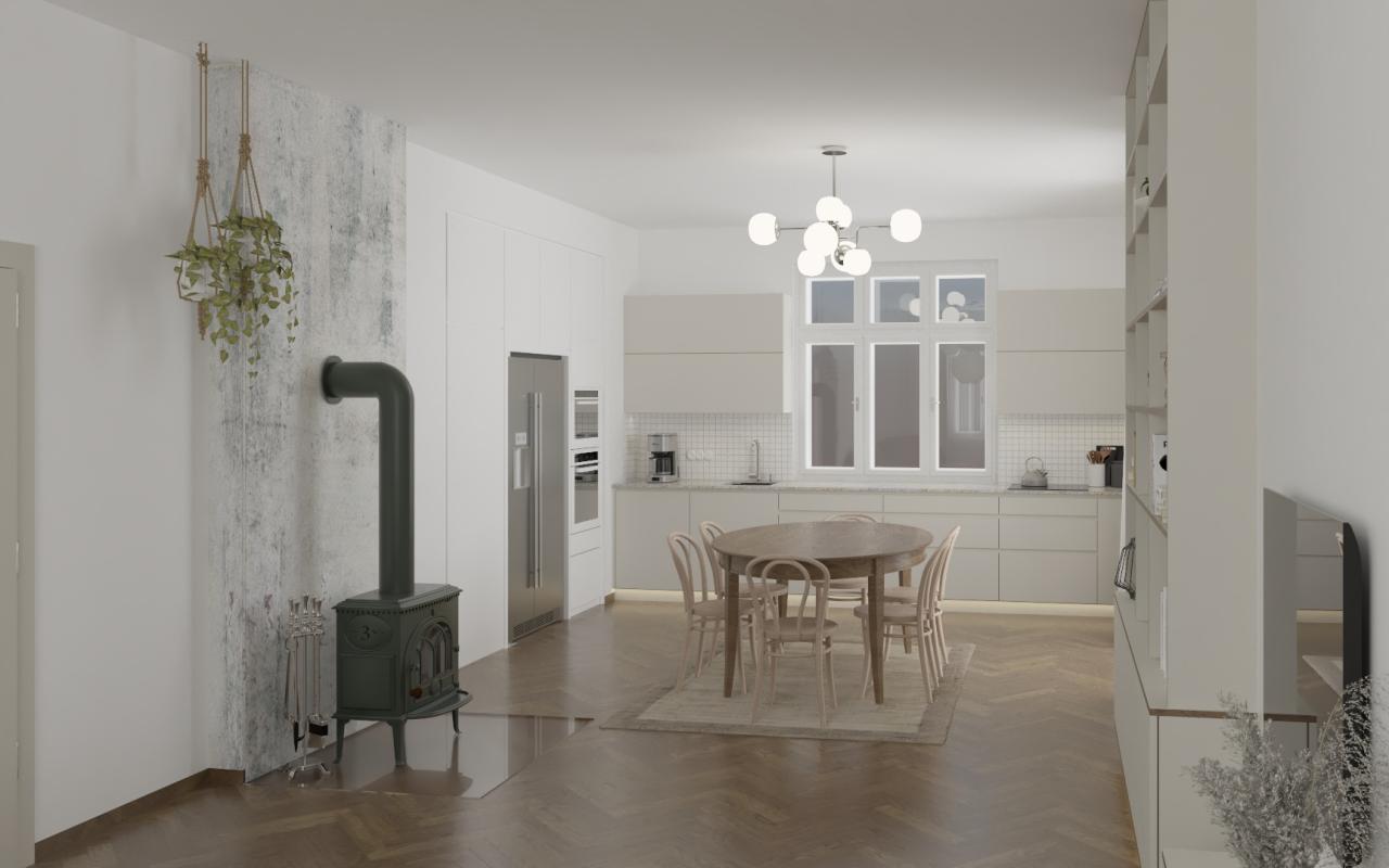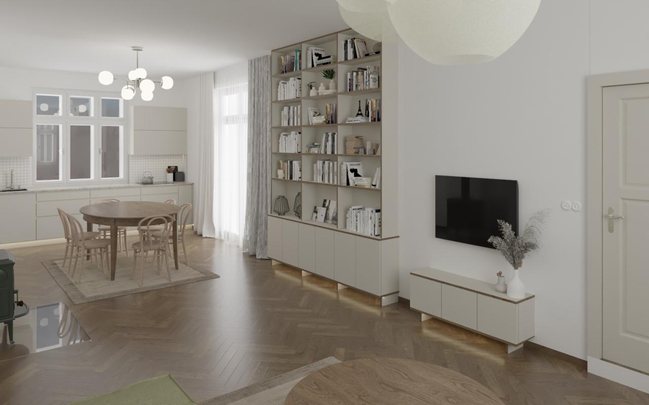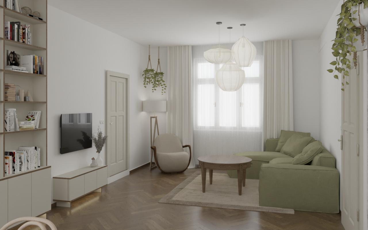Interiér prvorepublikové vily, kde se snoubí nadčasová elegance s moderním komfortem. Je laděný do světlých, vzdušných tónů, citlivě odráží původní architektonický styl. Celý prostor dýchá harmonií a klidem. Citlivé propojení původních prvků s moderním designem vytváří sofistikovaný a zároveň útulný domov s nezaměnitelnou atmosférou prvorepublikové elegance.