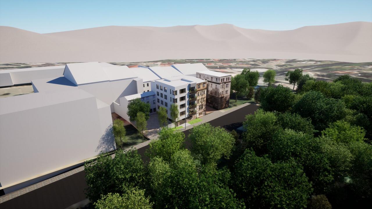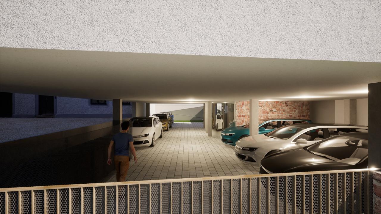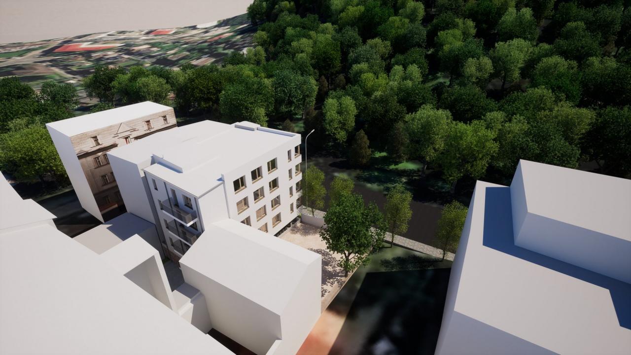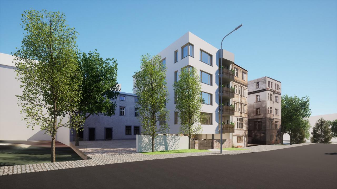 Zadáním bylo navrhnout bytový dům v proluce v centru města Trutnova. Dům obsahuje osm bytů (čtyři byty 3+KK a čtyři garsoniéry). Všechny byty mají balkon, parkovací stání a jsou dostupné bezbariérově - výtahem.