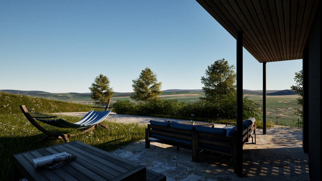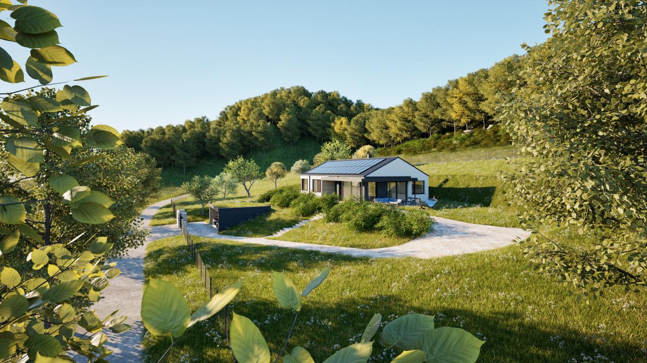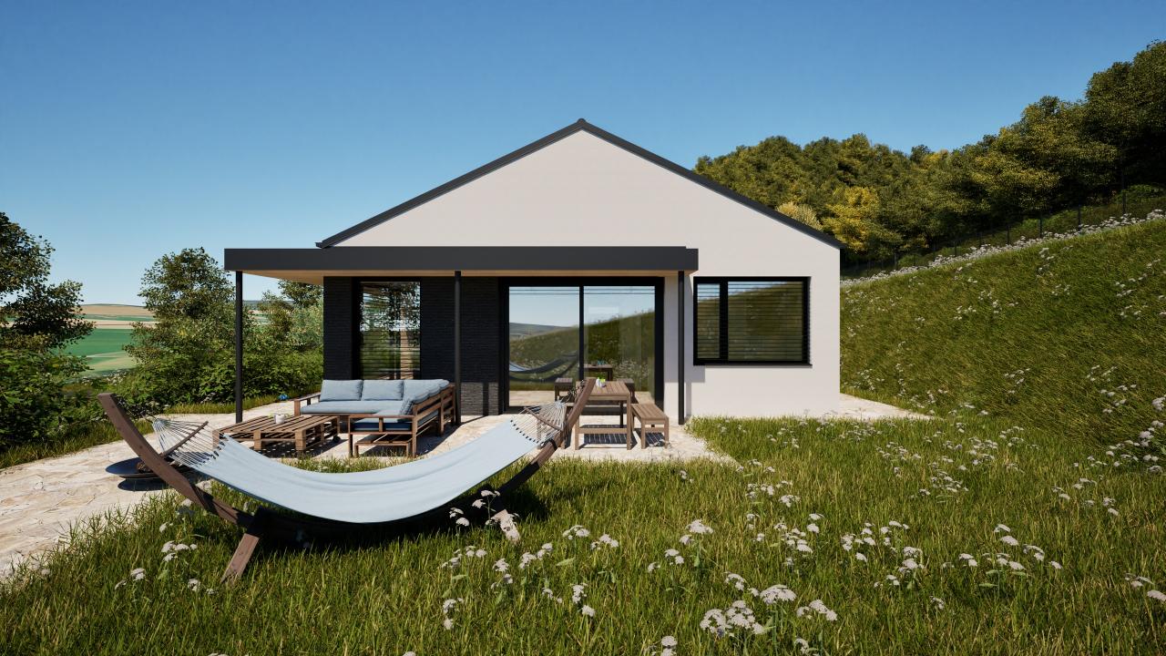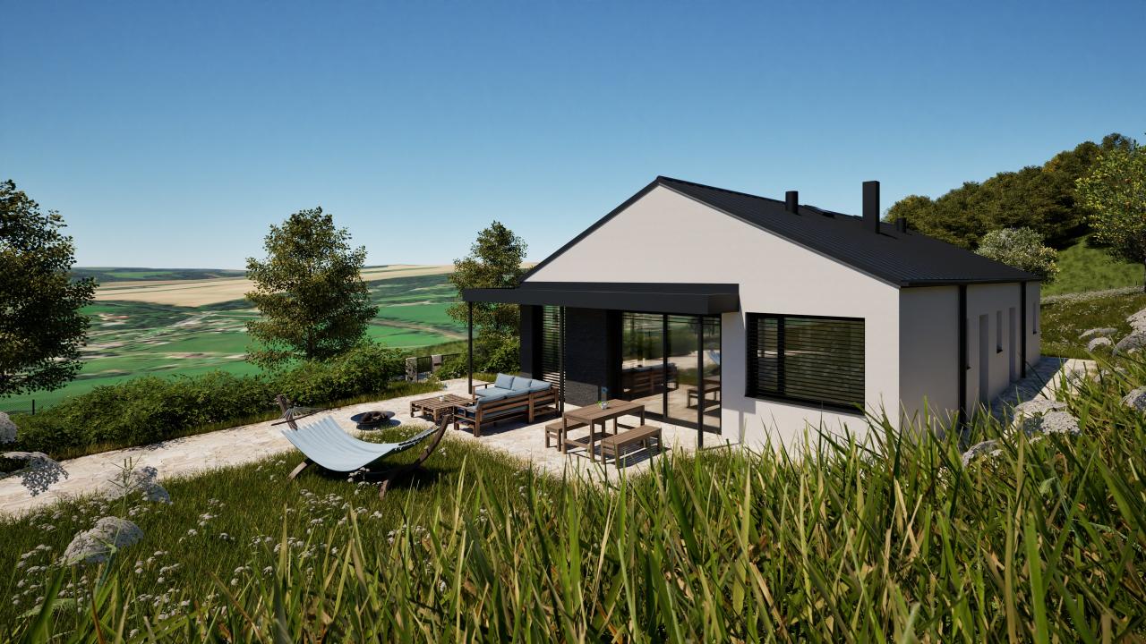 Zadáním bylo navrhnout přízemní rodinný dům o velikosti 4+KK s bohatě proskleným obývacím prostorem s výhledem do kraje. Všechny místnosti mají být větratelné oknem. Návrh má počítat s možností umístit na střechu fotovoltaické panely a obsahovat zadní hospodářský vstup do technické místnosti.