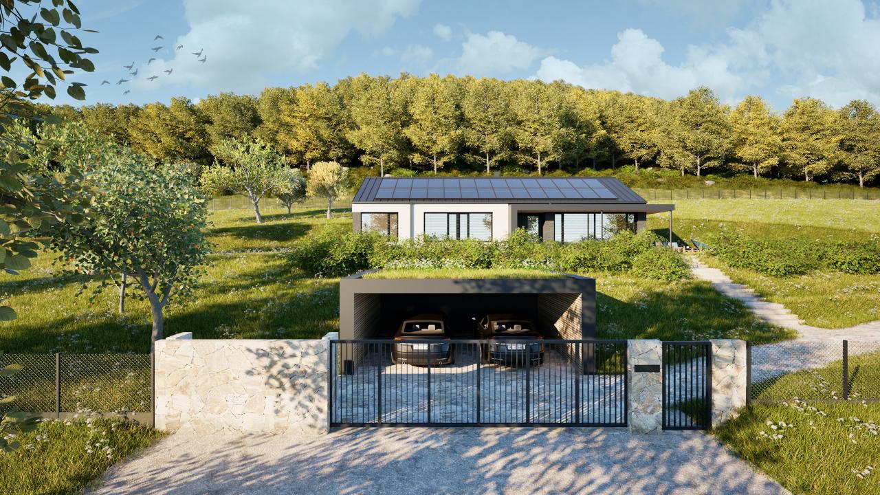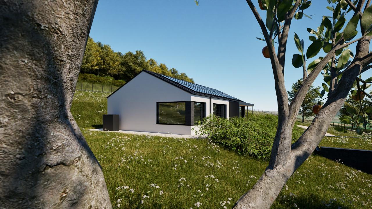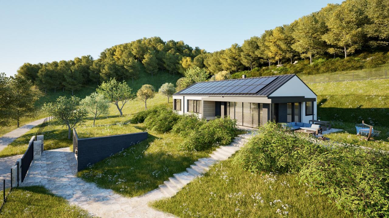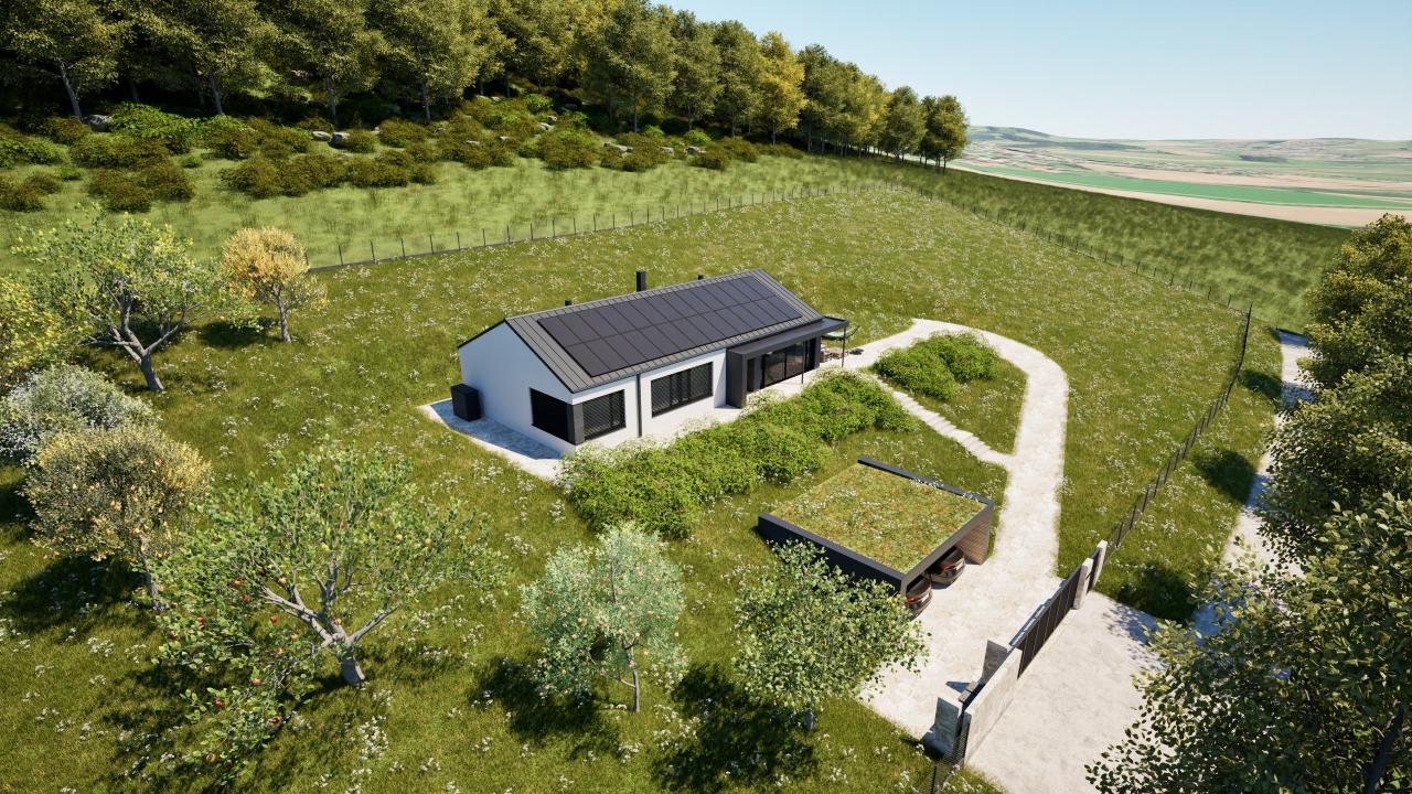 Velké Svatoňovice | dům ve svahu | zelená střecha | les | výhledy do kraje | fotovoltaika